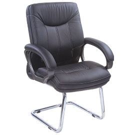 MEDIUM BACK VISITOR CHAIR, METALLIC PP ARM AND BASE, METALLIC FRAME, PU LEATHERITE