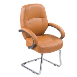 Visitor Chair, Metallic PP Arm With Cushion & Base, Metal Frame, Leathrite Tapestry Chrome plated