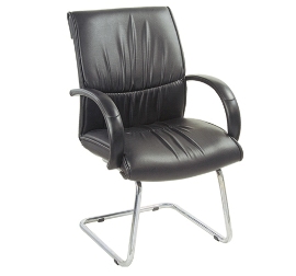 MEDIUM BACK, VISITOR CHAIR, PU ARM , PIPE STAND, PU LEATHERITE TAPESTRY, CHROME PLATED