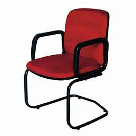 VISITOR CHAIR WITH PU ARMS, PIPE STAND, PU MODULED SEAT WITH BACK CUSHION,FABRIC TAPESTRY