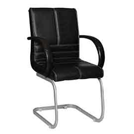VISITOR CHAIR, PU ARMS, PIPE STAND, LEATHERITE TAPESTRY